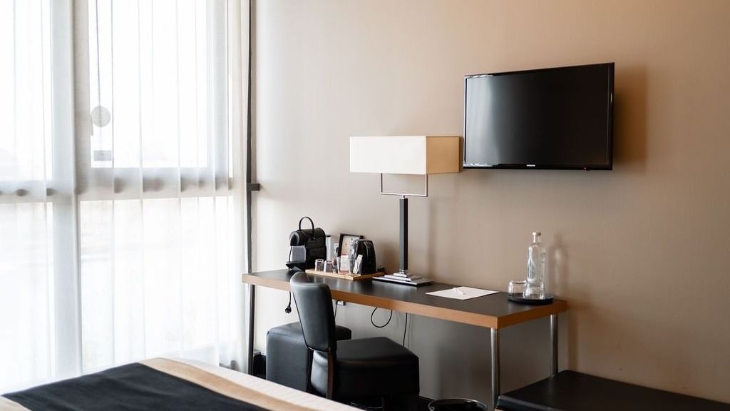 Our bright Privilege rooms enjoy 22 m² of floor space. They are tastefully furnished and have a modern decor conducive to rest. Air-conditioned, they boast a flat-screen TV with satellite and cable channels. Each room has a safe, telephone, wardrobe or closet. In the bathroom you will find complementary toiletries, bathrobes, and hairdryer. Wi-Fi is available free of charge.